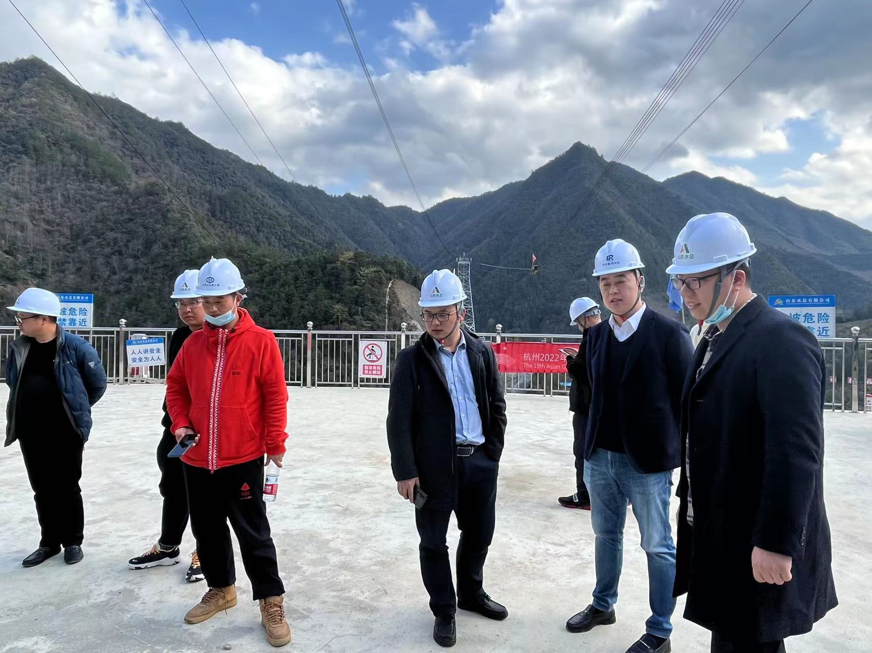 参访团到工程现场进行了观摩,详细了解了工程概况、混凝土重力拱坝施工工艺、引水建筑物和发电建筑物的施工难点和要点。参观结束后,孟天琦在会议室向来访人员介绍了山东水总发展历程、标准化工地建设、党建进工地活动开展情况等。参访团对杭州双溪口工程给予了高度评价。