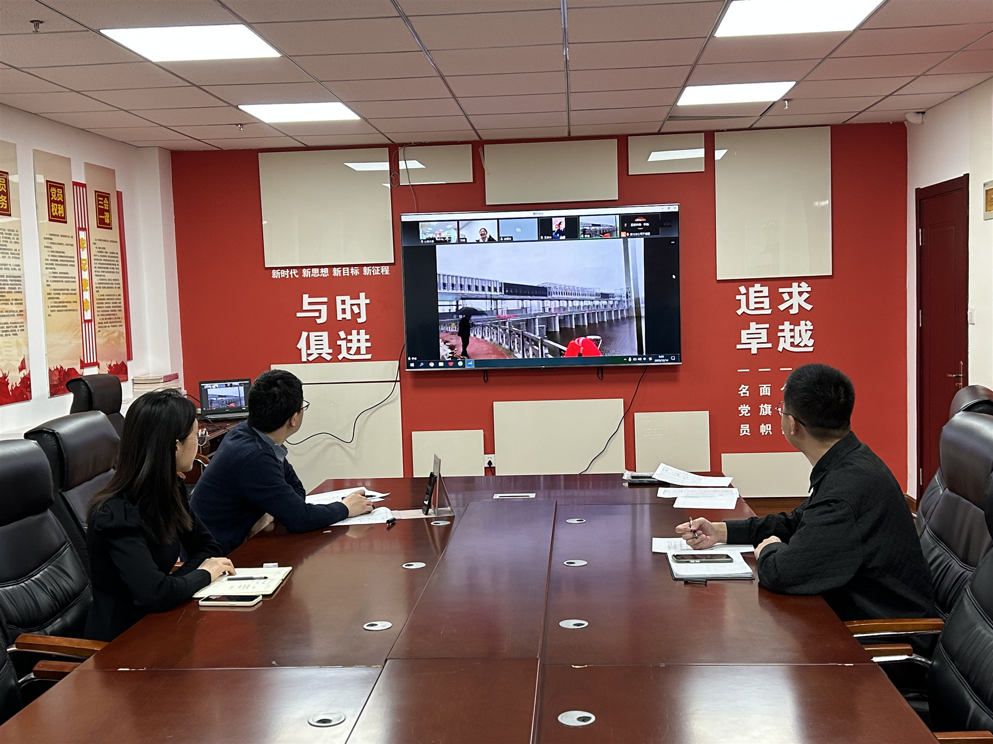 12月14日,公司关工委联合团委组织老同志、老专家向青年员工传技术、传精神,助力新生力量快速成长,持续弘扬山东水总“传、帮、带”精神。在泗水县泗河岳陵拦河闸工程施工现场,第七分公司项目负责人于恒雷、技术负责人李博在线上传授经验,公司近三年入职的80余名新员工参与典型项目线上观摩活动。公司团委书记王春华主持活动。