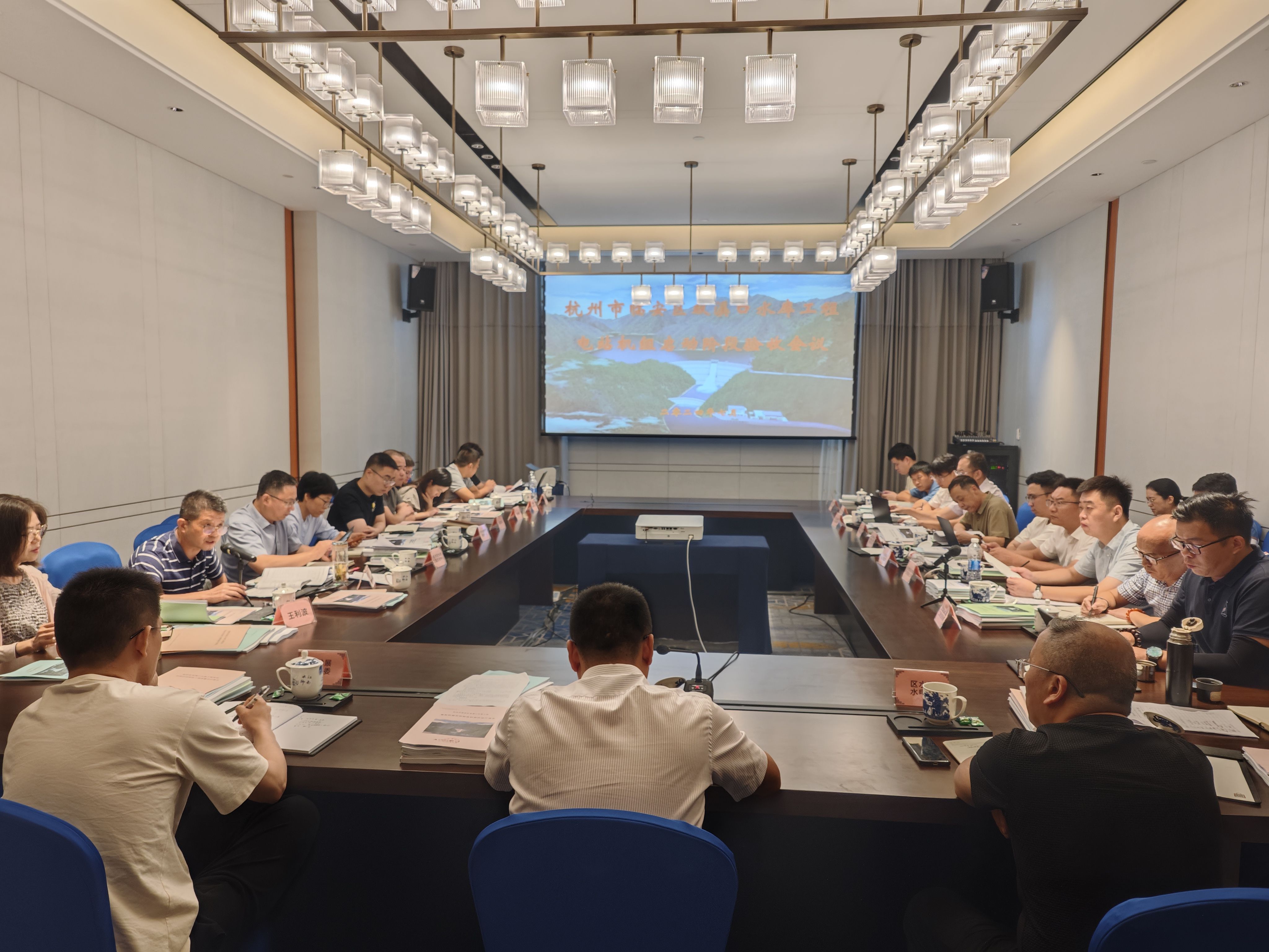 7月15日至16日,杭州市林业水利局在临安区主持召开了双溪口水库工程电站机组启动验收会议。杭州市发改委,市水库管理服务中心、市开云网页版登录入口质量安全管理服务中心,临安区发改局、区财政局、区水利水电局、双溪口水库工程指挥部,清凉峰镇人民政府,国网临安供电公司,特邀专家及工程参建单位的代表参加验收会议。