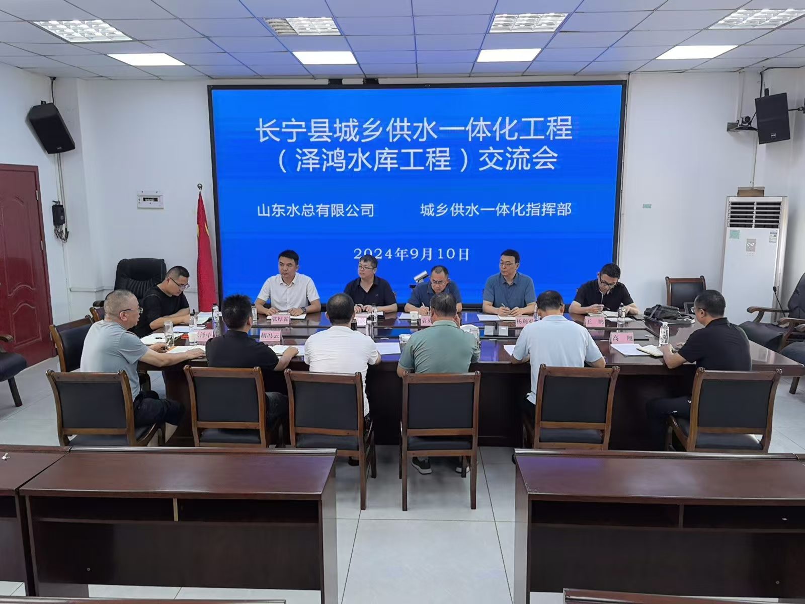 9月10日,公司党委委员、副总经理袁英杰,总会计师杨利军等一行到四川省长宁县水利局座谈交流。长宁县人大常委会副主任、城乡供水一体化工程指挥部副指挥长何贵生,长宁县水利局党组书记、局长王铭出席座谈会。