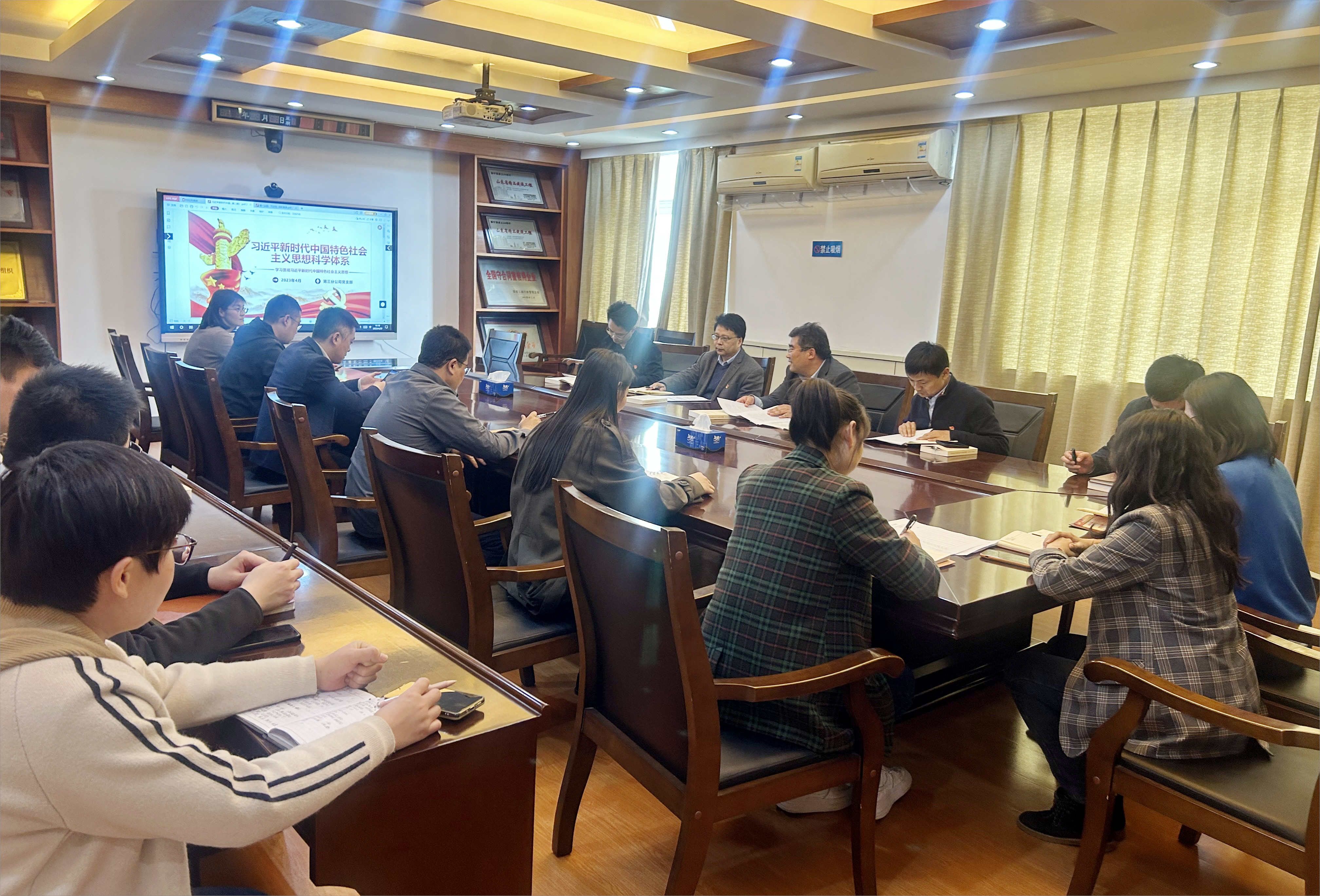 随后,大家共同学习了“习近平新时代中国特色社会主义思想科学体系知识点”学习课件,并开展热烈的交流讨论。党员干部纷纷表示,要努力将习近平新时代中国特色社会主义思想学深悟透,做到以学铸魂、以学增智、以学正风、以学促干。将学习作为自己的“必修课”,拿好学习的“基本分”,学会用新观点新方法解决老问题,将学习成效转化为做好本职工作、推动公司高质量发展的生动实践。